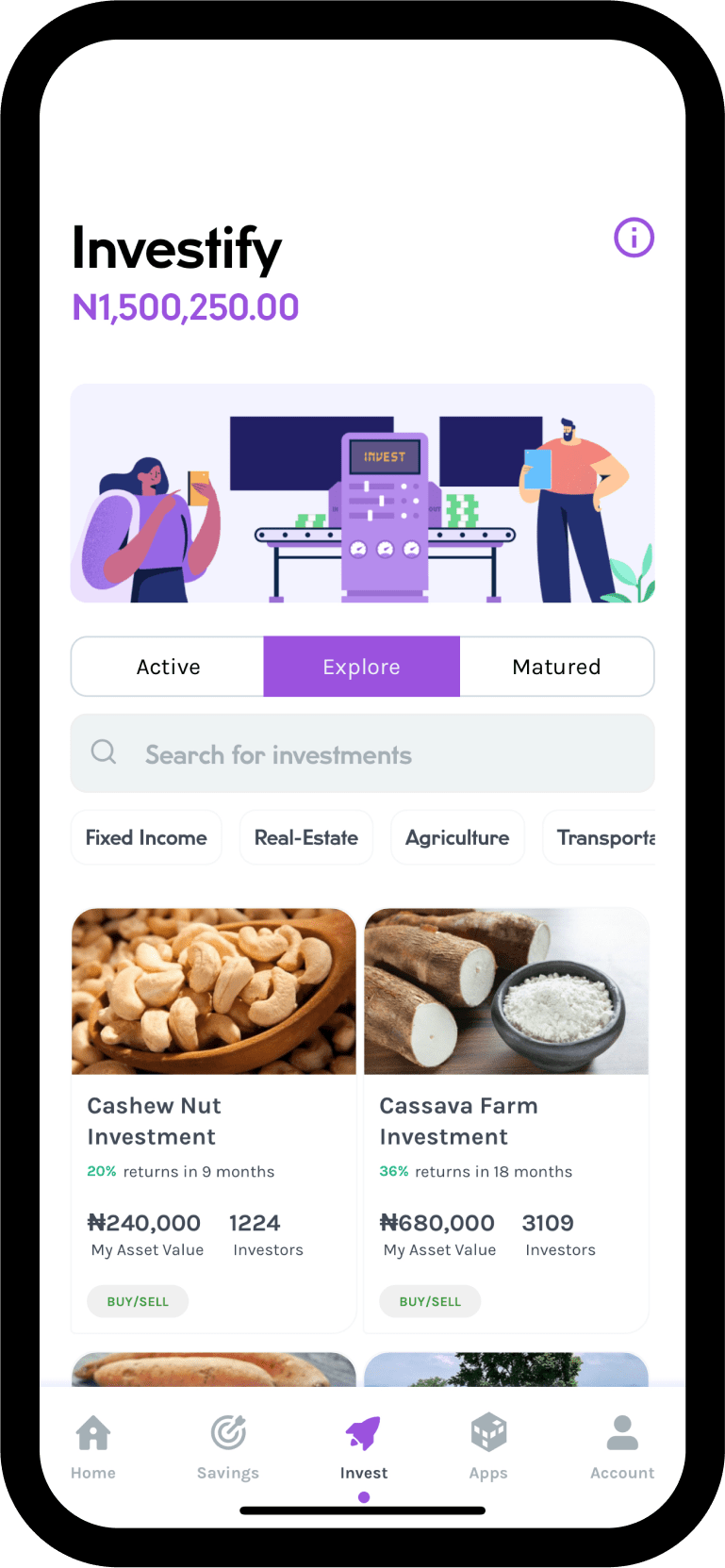 With as little as NGN5000, you can now access pre-vetted low-medium risk primary and secondary investment opportunities. No hidden fees/charges. Thorough due diligence and pre-vetting on all investments are carried out for maximum safety.